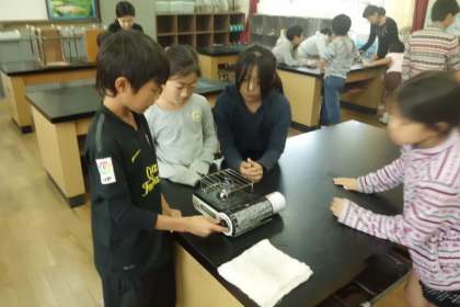 今日は,理科室にある器具や道具を調べたり,カセットコンロの点火練習をしたり,アルコールランプにマッチを擦って火をつける練習をしたりしました。