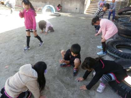 手でさわるだけでも,日なたと日かげの違いがたくさんわかりました。でも,実際に温度計を使って,日なたと日かげの地面の温度を比べてみたいな〜という子どもたちの声があがったので,次回は,温度計を使って観察します。どれくらの差があるのか,結果が楽しみですね。