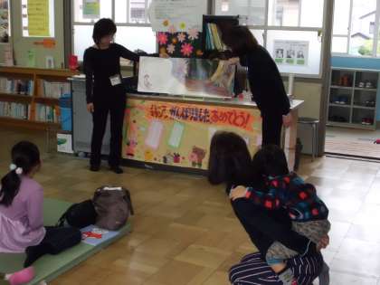 お母さんに学校で読んでもらう絵本に子どもたちの顔は幸せそうでした☆