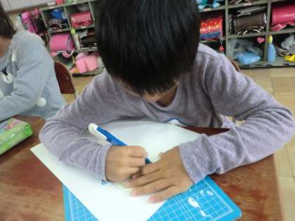 図工「うつしてみると」では,初めてカッターの練習をしました。カッターの持ち方,切り方,特徴などのお話を聞き,自分が描いた絵を切りぬきました。まだまだスーッとスムーズに切れない子どももいるので,安全に気をつけながら,練習していきたいと思います。