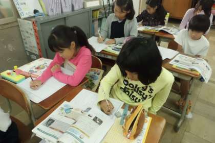 「火事をふせぐ」の学習のまとめとして,新聞作りに取り組んでいます。