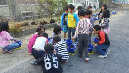 1年生がチューリップの球根を植えていました。