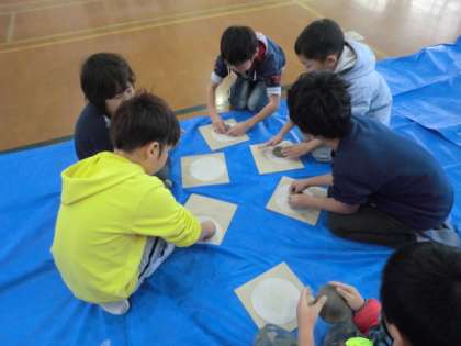 さあ,実際に作っていきます。「コップにしようかな。」「私は,お皿にするよ。」「周りを丸くするのが難しいね。」と友達と話をしながら,楽しく作っていました。