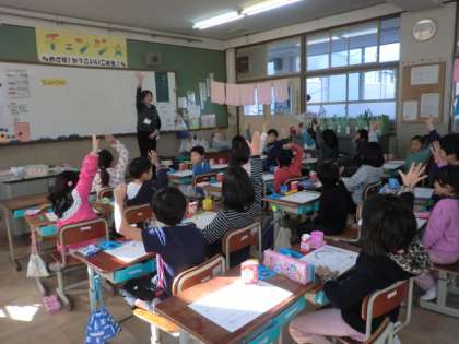 養護教諭の佐々木先生に来ていただき,歯磨きの仕方について教えていただきました。まずは,なぜ歯を磨かないといけないのか,先生のお話を聞きました。だいぶ前に教わった「ミュータンス菌」という名前もみんな覚えていました。