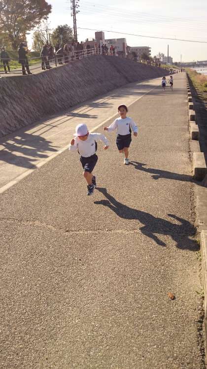 鴨川の河川敷1000mを元気よく走りました。初めてのマラソン大会。子どもたちは試走で1度走っているので2回目でしたが、今日は本番。自分のタイムが少しでも速くなるように頑張りました。