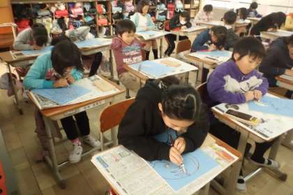 3年生の時には,三角刀を使っての線彫りだったのですが,4年生は面彫りに挑戦。