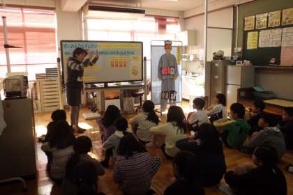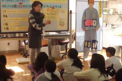 身体計測の時のお話「すいみんたんけんたい」は,1回目が「脳」,2回目が「筋肉」3回目が「骨」,4回目の今回は「腸」でした。