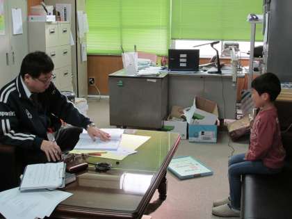 1年生のときには,2名一組のペアでしたが,今年は一人ずつお話しをしています。