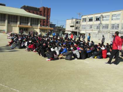 地震はいつ起こるかわからないし二次被害も想定されます。「自分の命は自分で守る」ために、避難の仕方をしっかり学びました。いつもの避難訓練よりも1分以上早く運動場に並ぶことができたこともよかったと思います。