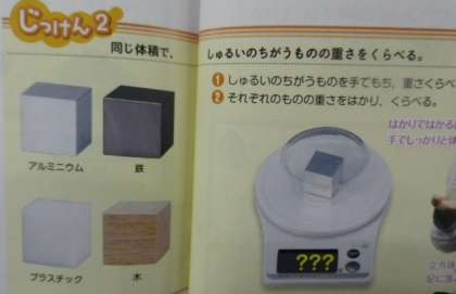 同じ体積でも,種類(木,鉄,アルミニウム,プラスチック)がちがうと,ものの重さはちがうのだろうか?