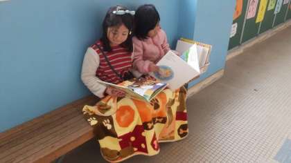 校長室の前を通ると,かわいいお客さんが2人。