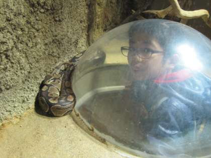 熱帯動物コーナーでは,なんとヘビと急接近!!!!