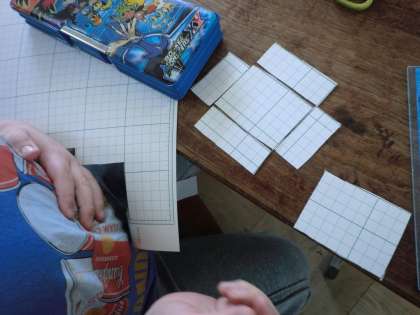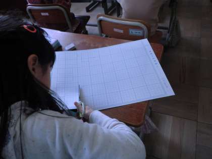 算数「はこの形」では,工作用紙に面を描いて切り,箱を作る学習をしました。「えっと,縦の長さと横の長さは何センチだっけ?」「ん?面は何枚作るんだっけ?」「あれ?面の形は合っているはずなのに,うまく組み合わないぞ。」と,色々と苦戦している様子でした。でも,箱が仕上がると,「わー!きれいに出来たよ。嬉しいな。」と,箱の仕上がりに満足していました。