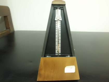 まず,元気な小学生が静かに座っている時,1分間に何回心臓が動いているかを,音楽室から借りてきた「メトロノーム」を使って,調べてみました。
