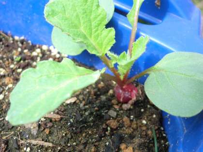 少しずつ暖かくなり,赤カブが大きくなってきました。早いものでは,根のあたりが赤くなって,少しふっくらしてきました。毎日水やりをして,観察をしています。