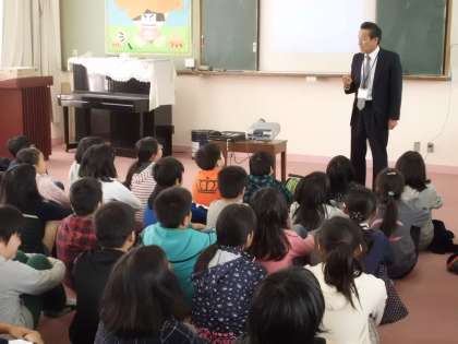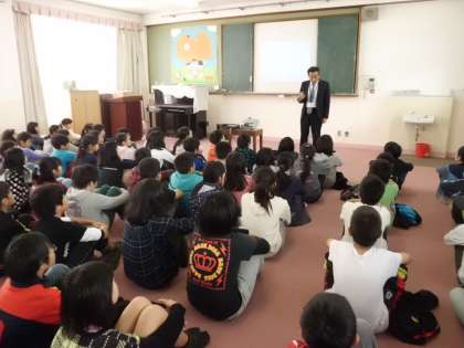 今日は校長先生から朝の挨拶についてお話をしていただきました。