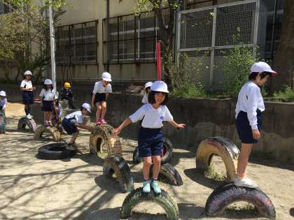 タイヤのから落ちないように気を付けながら,楽しんでいました。