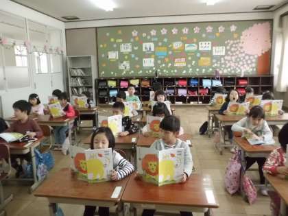 国語「あさ」の学習をしました。教科書を読む時は姿勢を正しく。声が出やすいように,教科書を持つ。はきはきと口を大きく開けて。少しずつ意識をして自然にできるようになるといいですね。