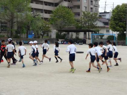 続いて,月・水・金に活動する陸上部です。ダッシュをしたり,リレーをしたりして陸上に親しみます。初めは,翌日に筋肉痛になりますが,体力向上の第一歩です☆