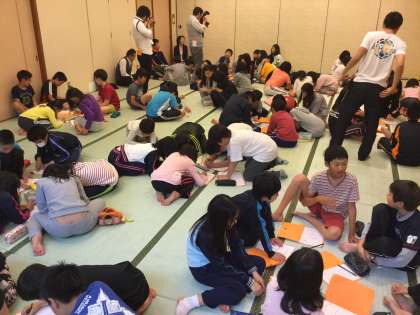 大盛り上がりのレクが終わり,反省会をしたときの様子です。