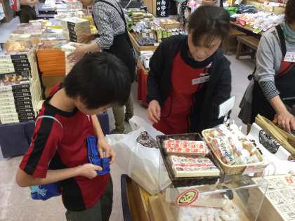 午後からの美観地区での買い物のために節約して買っている子ども,