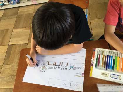 「○○室ってどこにあるの?」「何をするんだろう?」などと言っていた子どもたちですが,自分たちで教室を見つけて,そこにあるものをメモしたり,絵に描いたりしながら,それぞれのグループで調べてくることができました。