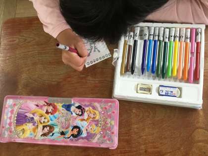 今日はそのカードの言葉を書いたり,アサガオの絵を描いたりしました。