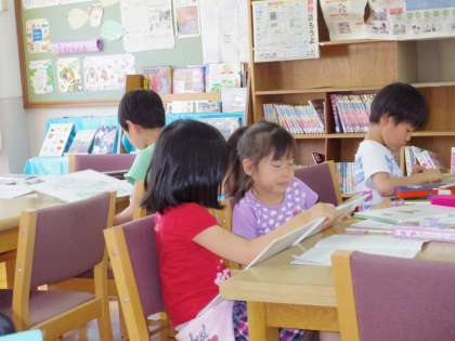 本を借りた後は,図書室で静かに本を読みました。