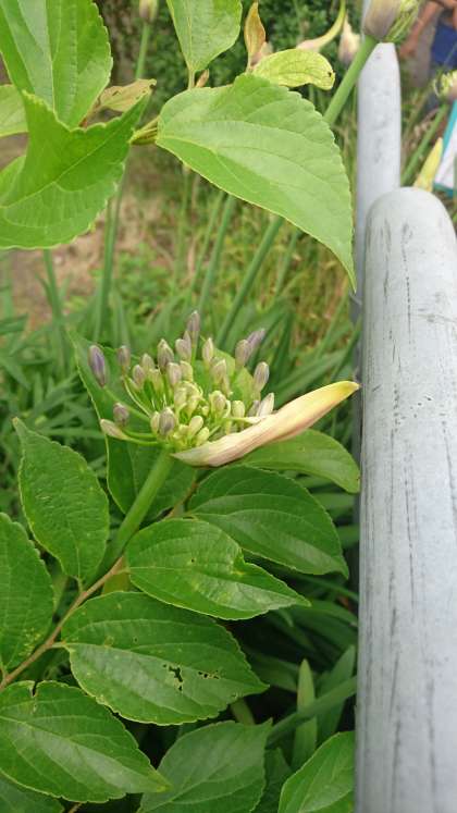 鴨川沿いの公園で,青いつぼみがたくさんついた花を発見しました。彼岸花にも似た形で,子どもたちは「どんな花が咲くんだろう?」と目を輝かせ,まだ青い柿の実や鴨川にたたずむ白く大きな鳥なども見つけ,とても嬉しそうな表情でした。