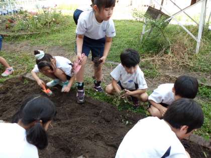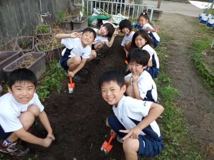 たくさんの雑草を抜いたり,肥料をまぜたり,子どもたちはおいしい野菜を作るためにとても頑張りました。