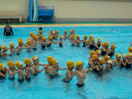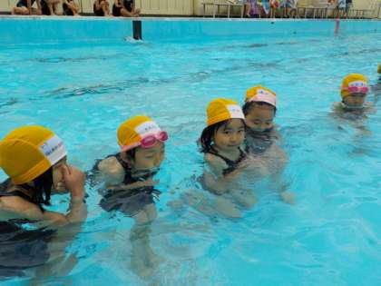 今日は,かにさんになって,口まで水につけてぶくぶくと息を吐く練習をしました。その後は,かもつ列車をして遊びました。楽しい活動をしている中で,プールの広さにも慣れてきたようです。