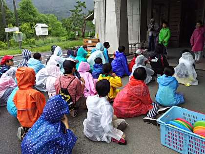 活動を始めようとしたら、小雨が降ってきました。