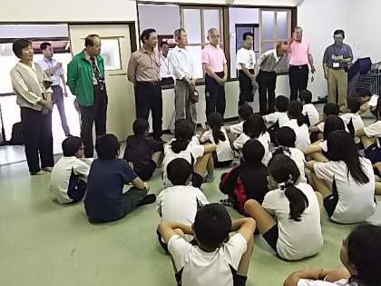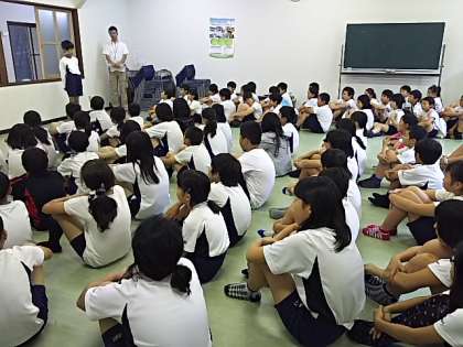 最初にみんなで集まって、あいさつをしました。