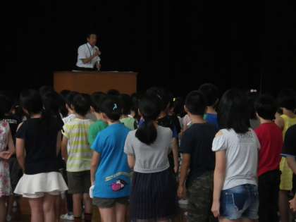 校長先生から「あつさにまけない」ようにどうすればよいか、お話がありました。だらだらせず、気持ちを切りかえて乗り越えていきたいですね。