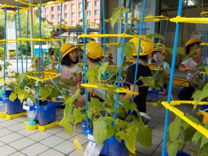日々,朝顔が生長しています。観察をする度に,新しい発見があります。「なんか,とげとげしたものができたよ。」「それ,つぼみやで。」「もうすぐ花が咲くんかな。」と,つぼみの数を友達と数え合っていました。