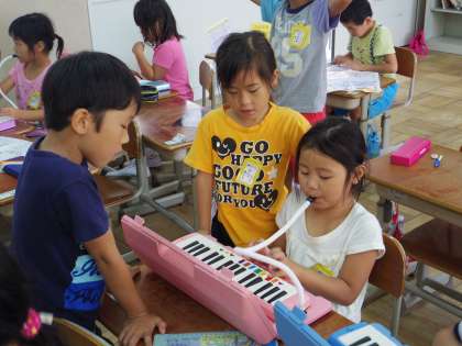 音楽の時間に,初めてけんばんハーモニカの練習をしました。