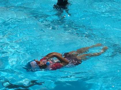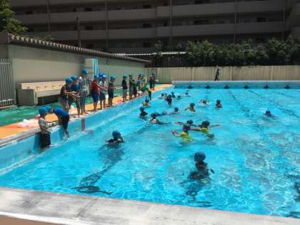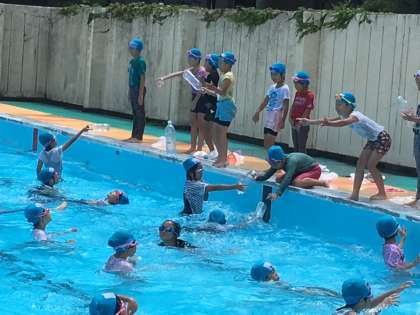 今日は、服を着たままの状態で泳ぐ「着衣泳」をしました。いつもより泳ぎにくいのですが、子どもたちは楽しんで泳ぐ練習をしていました。