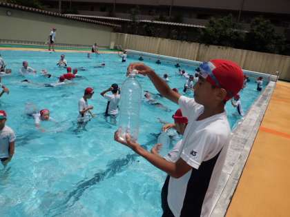 今日はペットボトルを抱えて浮く練習をしました。