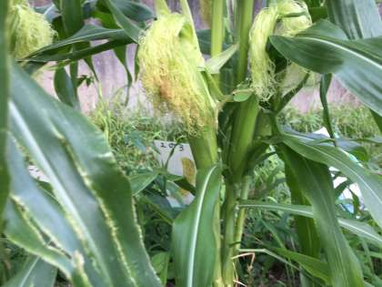 これまでに実った野菜をおうちに持ち帰り,料理をしていただいたご家庭もありますが,今日見ると,えだまめやとうもろこし,きゅうりがたくさんできていました。