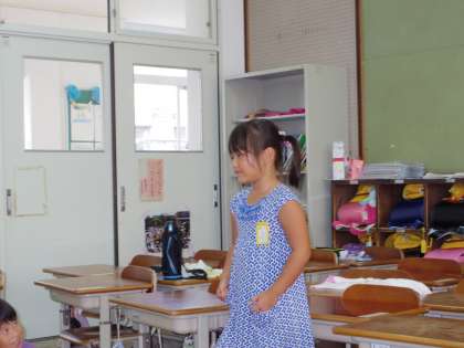 夏休みに,お家の方にいろいろな所へ連れて行っていただいたようで,目をキラキラさせながら思い出を発表していました。