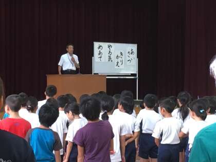 朝会では,夏休みが終わって1週間が経ったので,しっかり切り替えて学習していこうというお話がありました。