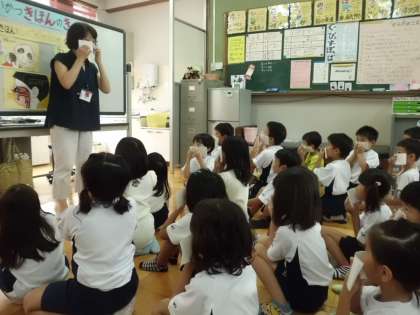 そして,鼻水にはかぜやインフルエンザのウイルスが含まれているので,上手に鼻をかむことが大切であることを話しました。
