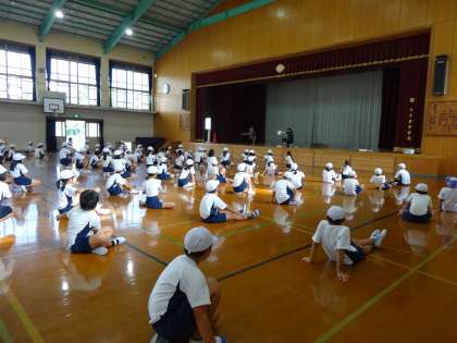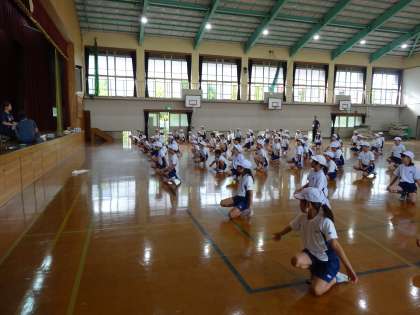 本日から,運動会の集団演技(エイサー)の練習を始めました。