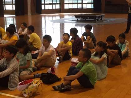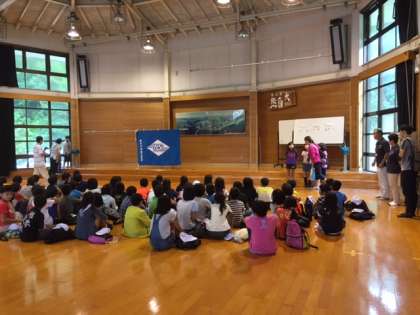 校歌を歌いながら砂川小学校の旗を掲揚していきました。