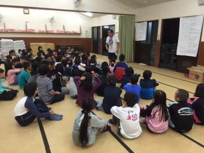 校長先生からのお話をしっかり聞いてから,ナイトウォークスタート。