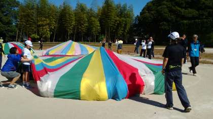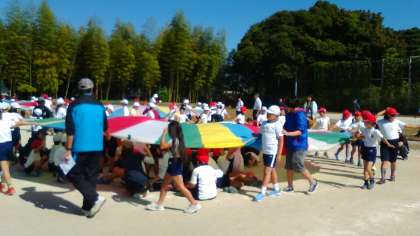 音楽に合わせて藤城小学校3年生と一緒に楽しく交流しました。