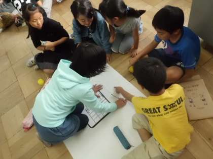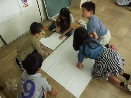 グループに分かれて、大きな模造紙に