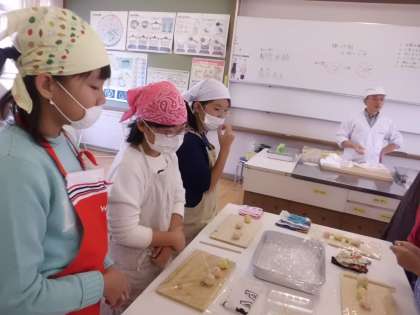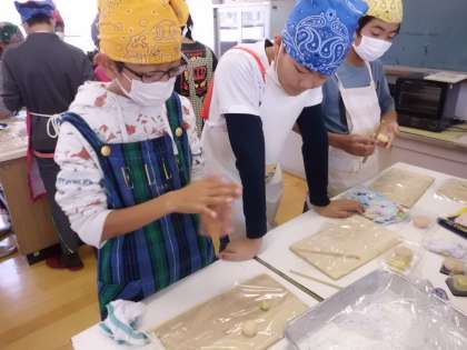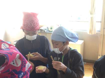手に水分をつけて,ひっつかないように柔らかい餡に悪戦苦闘しながら「桜」と「いちょう」を作っていきます。