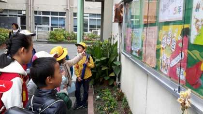今朝,登校してきた子どもたちは,学校の掲示板に貼られた各学年・学級のポスターを見つけて,嬉しそうに見ていました。