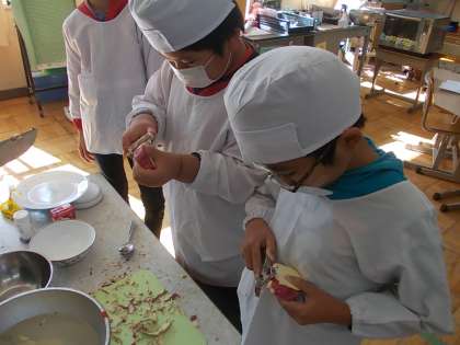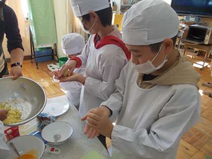 先日、秋のわかばパーティーを行いました。今回はスイートポテト作りに挑戦です。事前に調べたレシピの通り、さつまいもの皮むき、レンジで蒸す、つぶす、塩や砂糖や牛乳で味つけする、きれいに丸める、卵黄を取り出す、卵黄を塗る、などほとんど全てを子どもたち自身がやり切りました。あとはオーブンで焼くだけ!うまくできるかな・・・!